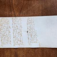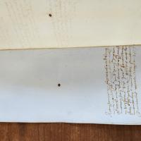 The slaveholder named Ottobone Lomellini leases out an enslaved Bosnian woman named Maria, who is approximately 30 years of age, to a silk merchant named Girolamo de Canalis, for a term of 12 years at a total cost of 150 Genoese lire. She was manumitted by Ottobone later on the same day and so this contract represents a form of redemption by Maria for the manumission. The contract also mentions that the enslaved Maria is leased with the clothes that she has on her person.