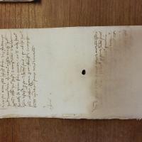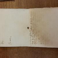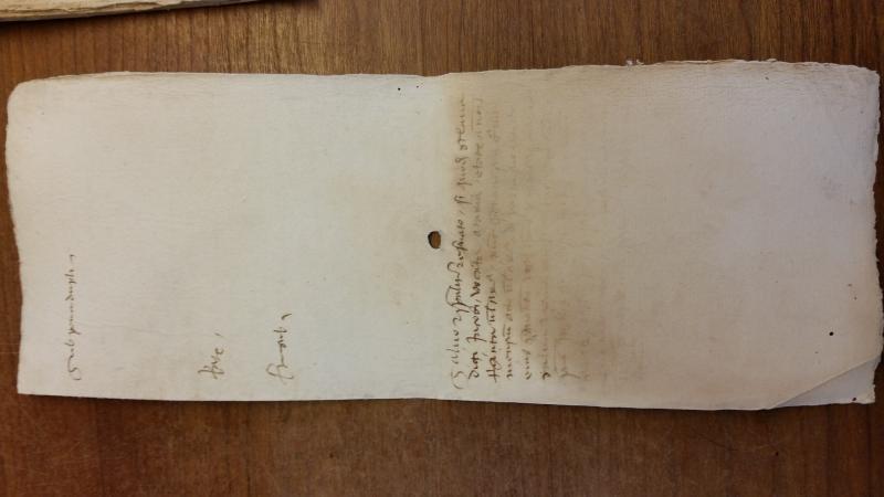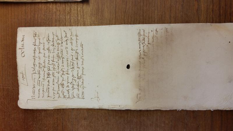 The slaveholder named Giacomo de Pinu purchases insurance against the risk of death from childbirth from the underwriter Pellegro Zucca for an enslaved woman named Maria, who is approximately 30 years of age and pregnant for about eight months, for 150 Genoese lire. Giacomo is absent during the transaction and is represented by the enacting notary Branca Bagnara. The contract has water damage so there are missing details about the term of the insurance, the place of enactment, and the witnesses.