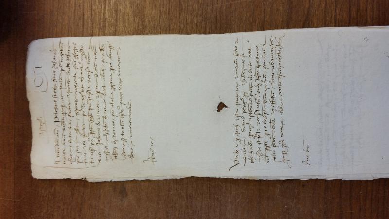 The slaveholder named Giovanni de Romeo purchases insurance against the risk of death from childbirth from the underwriter Pellegro Zucca for an enslaved woman named Caterina, who is approximately 21 years of age and pregnant for about six months, for 160 Genoese lire. The insurance has a term of five months. Giovanni is absent during the transaction and is represented by the enacting notary Branca Bagnara.